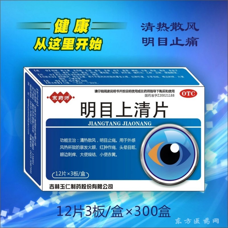 | 功能主治 | 清热散风,明目止痛。用于外感风热所致的暴发火眼、红肿作痛、头晕目眩、眼边刺痒、大便燥结、小便赤黄 |